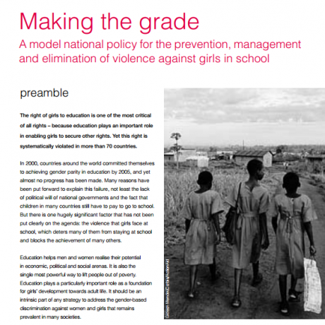 Making the grade: A model national policy for the prevention, management and elimination of violence against girls in schoo